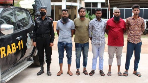 গ্রেফতারকৃতরা হলেন— হৃদয় মিয়া (২৫), মো. বাবুল (৩০), মো. নুর হোসেন (২৩), মো. হাসান (২১) ও মো. রাসেল (৩০)।