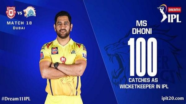 লোকেশ রাহুলের ক্যাচ ধরার সঙ্গে সঙ্গেই ধোনি ইতিহাসে জায়গা করে নেন। উইকেটকিপার হিসেবে টুর্নামেন্টের ইতিহাসে এটি ধোনির ১০০তম ক্যাচ। এর আগে মুম্বাই ম্যাচেই সার্বিকভাবে ইন্ডিয়ান প্রিমিয়ার লিগে ১০০ ক্যাচ (উইকেটকিপার ও সাধারণ ফিল্ডার হিসেবে) ধরার রেকর্ড গড়েছিলেন ধোনি।