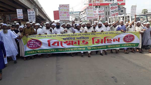 গাজীপুরের কালিয়াকৈর উপজেলার চন্দ্রা এলাকায় উলামা পরিষদের উদ্যোগে ধর্ষকদের ফাঁসির দাবিতে বিক্ষোভ মিছিল হয়েছে। শুক্রবার দুপুরে ঢাকা টাঙ্গাইল মহাসড়কে এ মিছিল হয়। জুম্মার নামাজের পর বিভিন্ন মসজিদের মুসল্লিরা এক হয়ে ঢাকা-টাঙ্গাইল মহাসড়কের বিভিন্ন সড়কে বিক্ষোভ মিছিল করেন। এ সময় বক্তব্য রাখেন, উপজেলা উলামা পরিষদের সভাপতি মুফতি এমদাদুল হক, উপজেলা উলামা পরিষদের সাধারণ সম্পাদক মাওলানা আমিনুল ইসলামসহ বিভিন্ন মসজিদের ইমামরা।