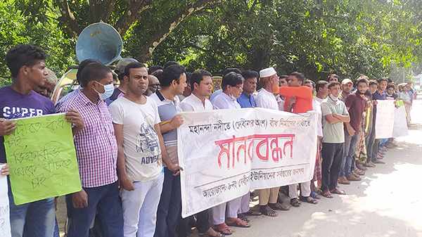 চাঁপাইনবাবগঞ্জ সদর উপজেলা আওয়ামী লীগের সভাপতি ও ভাঙন কবলিত এলাকার অধিবাসী আজিজুর রহমানের সভাপতিত্বে ঘণ্টাব্যাপী চলা এ মানববন্ধনে বক্তব্য রাখেন দেবীনগর ইউপি চেয়ারম্যান আব্দুর রহিম বিশ্বাস, শিক্ষক মোস্তাফিজুর রহমান ও নাইমুদ্দিন আহম্মেদ, সাবেক ছাত্রনেতা দানেশ আলী প্রমুখ।