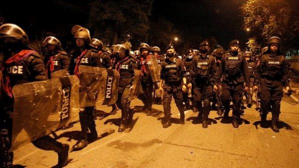 সরকারপক্ষের লোকদের সঙ্গে বিরোধীরা যেন সংঘর্ষ না জড়াতে পারে, সেজন্য দুই পক্ষের মাঝখানে অবস্থান নিয়েছে বিপুল সংখ্যক নিরাপত্তারক্ষী।