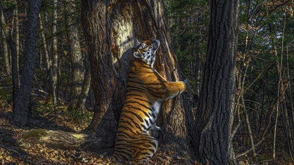 রাশিয়ার পূর্বাঞ্চলীয় অরণ্যে তোলা একটি সাইবেরিয়ান বাঘের (আমুর টাইগার) ছবি এ বছরের সেরা বন্যপ্রাণীর ছবি হিসেবে স্বীকৃতি পেয়েছে। রুশ ফটোগ্রাফার সার্গেই গর্শকফের ক্যামেরায় ধরা পড়ে গাছের সঙ্গে আলিঙ্গন করা বাঘের এই চিত্র।